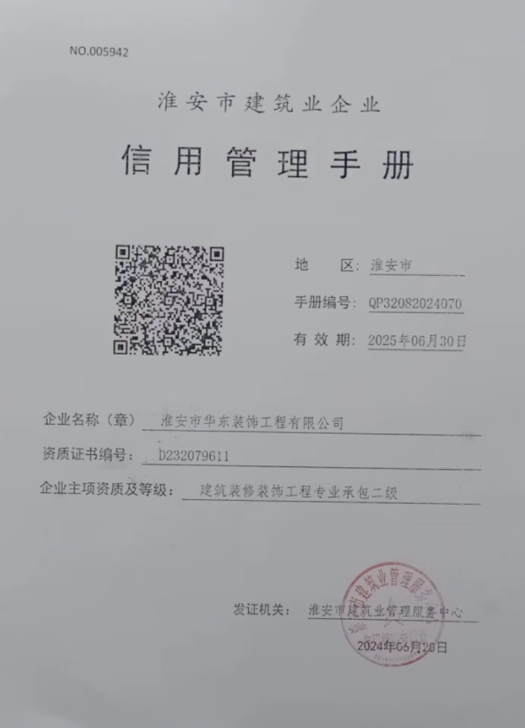 淮安市華東裝飾工程有限公司成立于2005年1月,企業(yè)性質(zhì)為民營(yíng)股份制企業(yè), 是一家管理,質(zhì)量保證體系嚴(yán)密的專業(yè)裝飾公司
